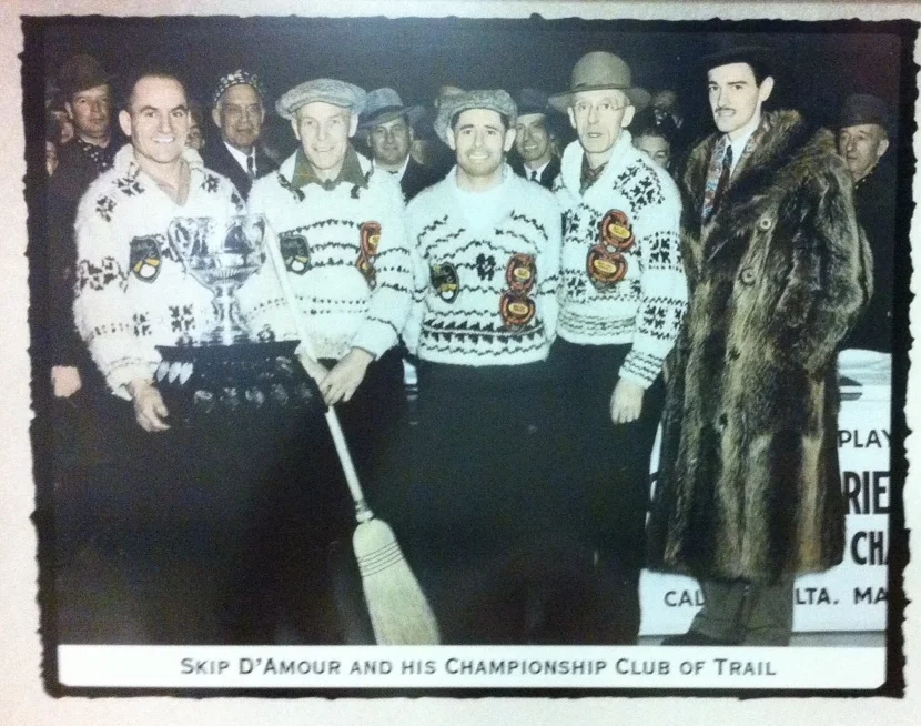 Cool piece, the “Frenchy” D’Amour photo would be from the 1948 Brier that was held in Calgary – probably at the Corral. The advertising was interesting to see on the scoreboard - “Smoke British Consols” which were a brand of MacDonald’s tobacco products.
