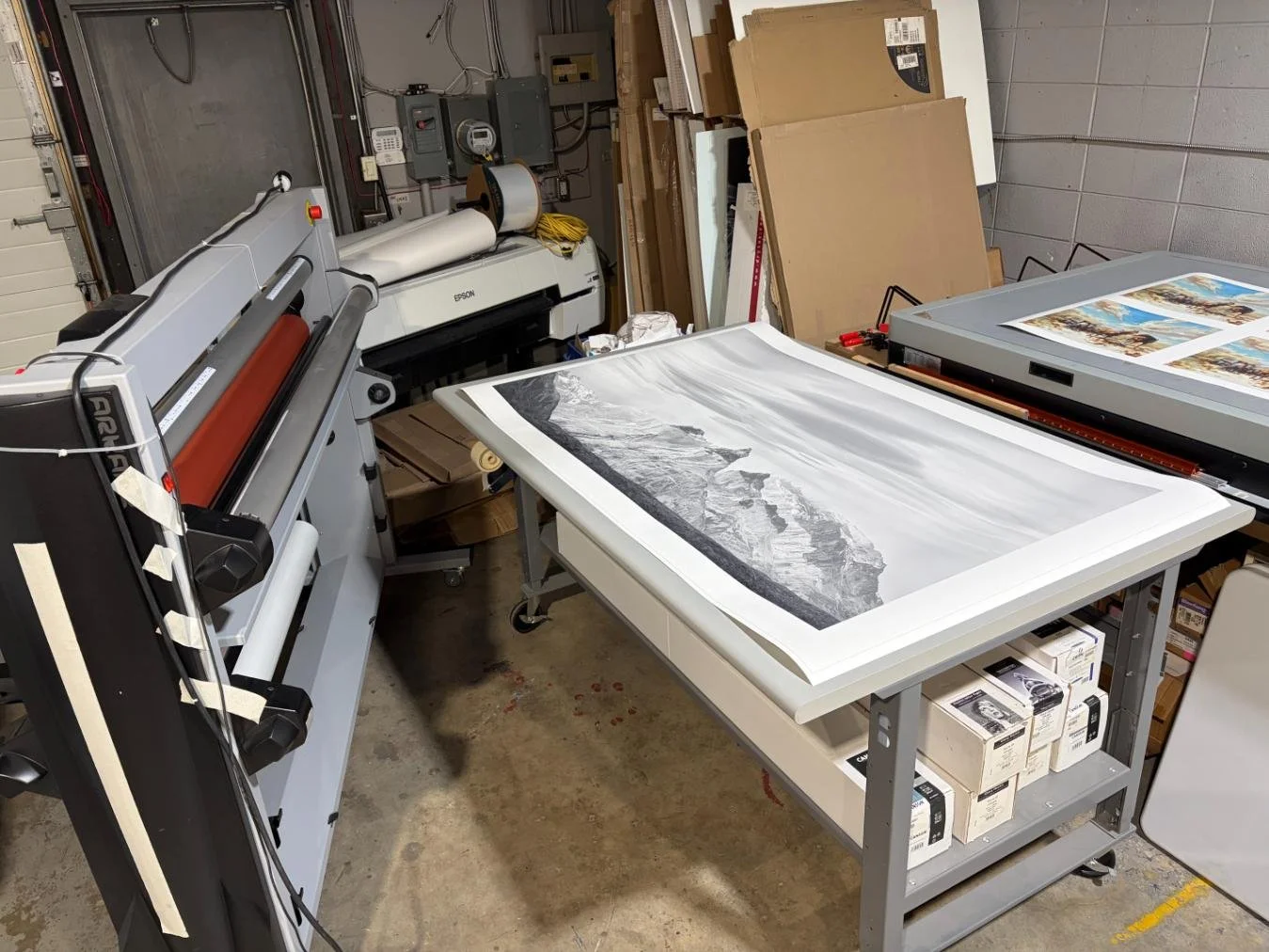 Not satisfied with general photo lab prints, Royce began printing his own personal photography work in 2004 using digital inkjet printers. He has been creating fine art prints professionally for other photographers and artists for 10 years, with his own print studio for six years. Here are some fun facts about the studio: