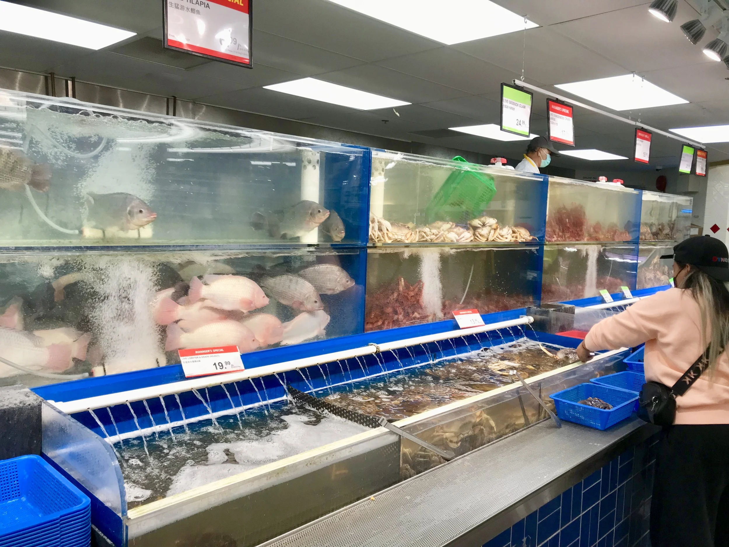 After checking Google Maps for a cluster of interesting places within walking distance and finding none I had to “go flaneuring by car.” First stop was Marlbough Mall the NE’s equivalent to the SW’s Chinook Centre. Unlike Chinook Centre, it hasn’t changed much in 50 years. Next stop was T&T Supermarket with its live fish market, a definite reminder I wasn’t in a grocery store in the SW.