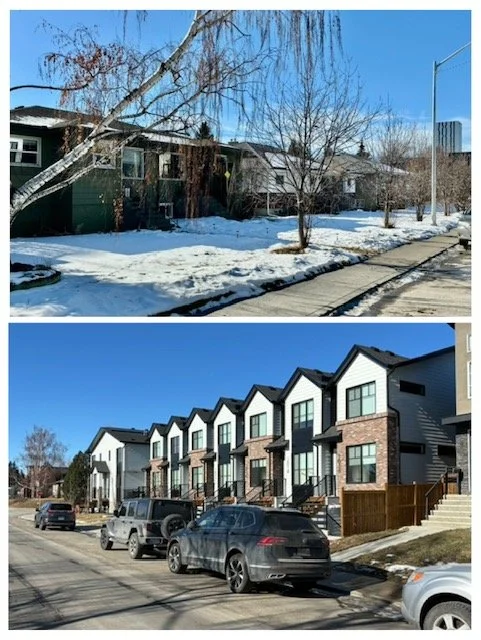 Inner-city neighbourhood bungalows are being rapidly converted to townhomes each with a secondary suite. The missing middle (smaller multi-family projects) is not missing in Calgary.