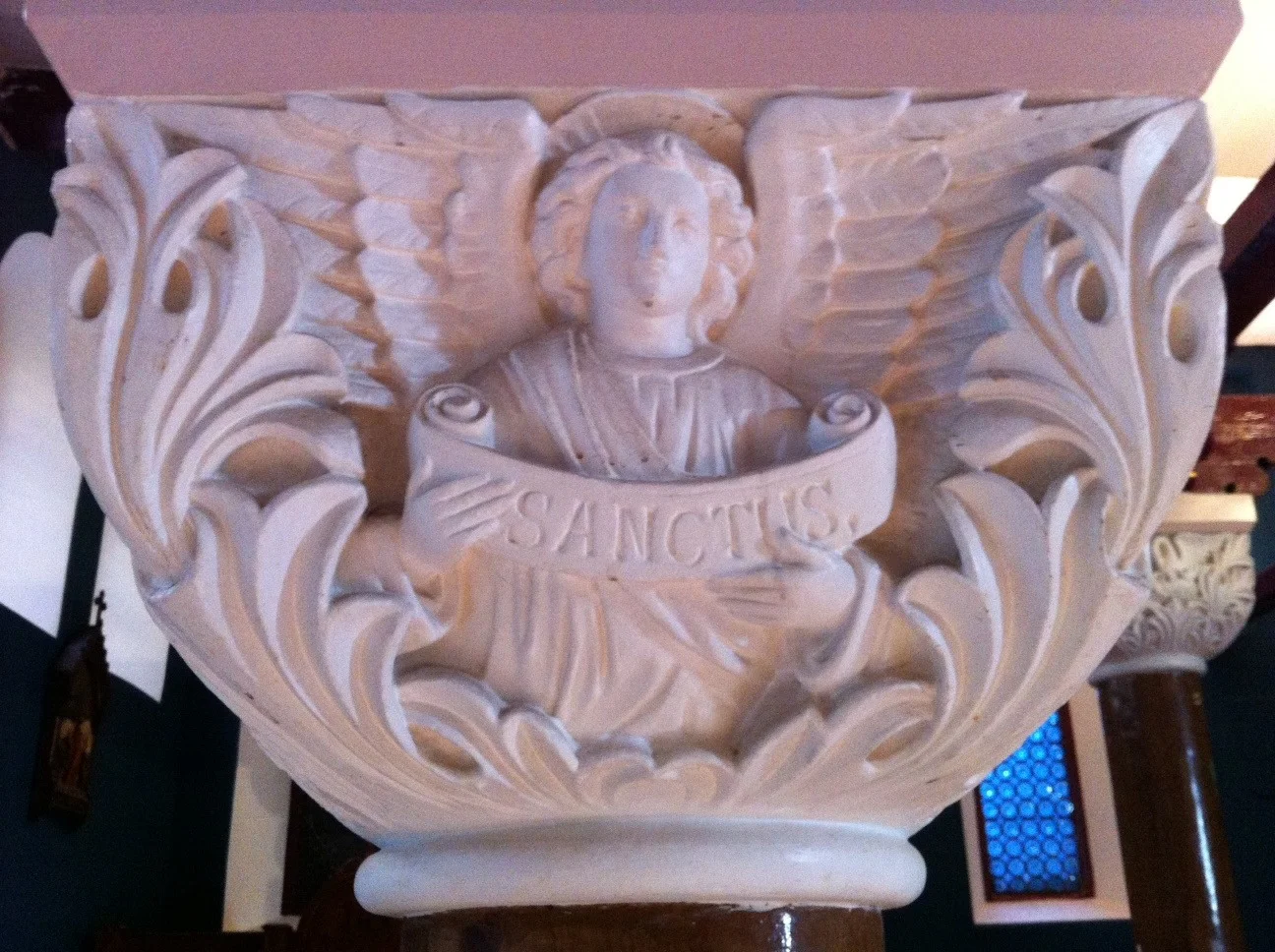 The actual church ceiling is very unique with is wall paper like decoration.