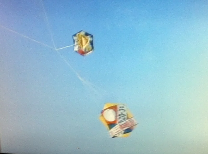 Several large 20-foot kites were suspended from the ceiling, creating a very colourful and dramatic statement.