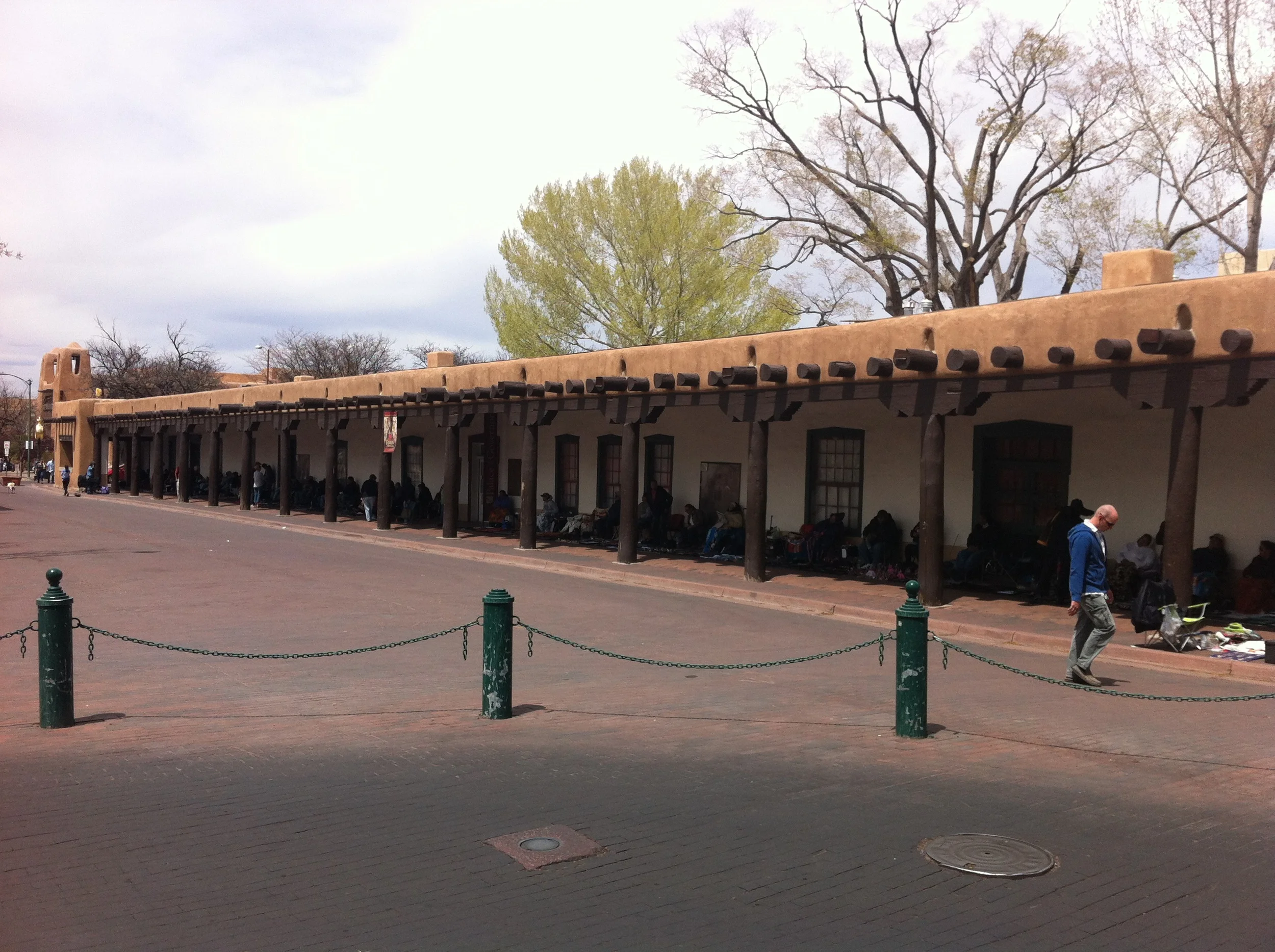 The central Santa Fe Plaza is not only a National Historic Landmark, but the “heart of Santa Fe.” Many downtown plazas and squares make this claim but in Santa Fe it is most definitely true. While we were there, a military band was playing played on the bandshell with a block-long row of local artisans selling their art and crafts across the street. A wonderful array of small restaurants and shops, line the streets around the plaza, as well as museums and the iconic Cathedral making it very pedestrian friendly.