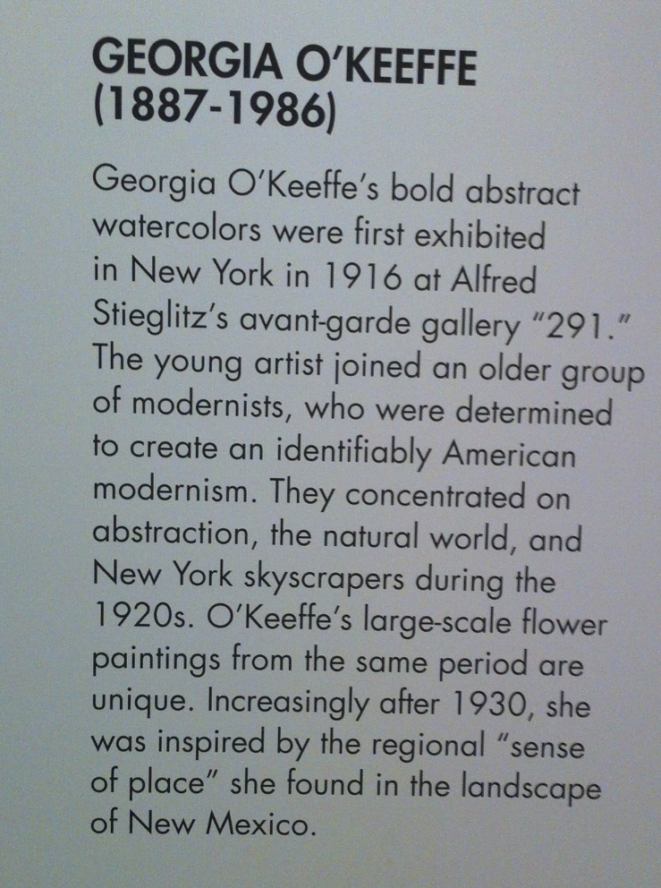 I had been looking forward all trip to seeing the Georgia O’Keeffe Museum collection and comparing her work to Canada’s goddess of art and nature - Emily Carr. I was surprised at how small the museum was; it seemed just as I was getting into the artist’s work it was over. I was also not impressed with the number of security guards, it seemed as much a prison as a museum.