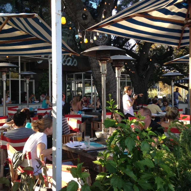 Contigo describes its menu as farm-fresh Texas fare. That’s not all that descriptive, but all you need to know is that the food and cocktails are great and the ambiance is quintessential Austin. What does that mean? It means that all of the seating is outside – only the kitchen is held within four walls. This qualifies as quintessential Austin because it’s warm enough here 95% of the year to get away with that. They have a great Happy Hour including $1 fried chicken on Thursdays starting at 5:00 PM until they run out!