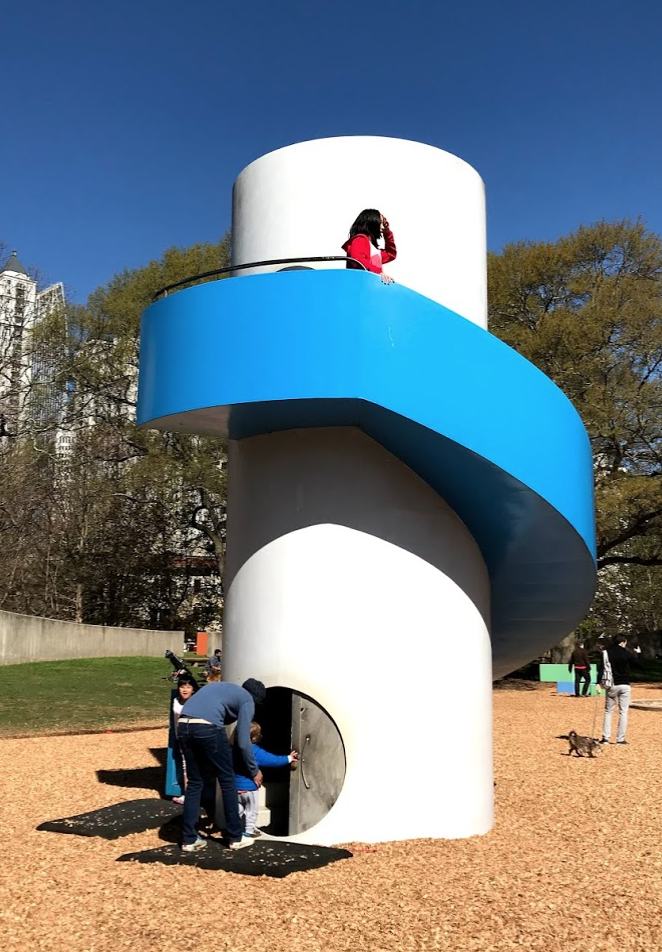 For as long as I can remember, I have thought playgrounds should do double duty as sculpture parks. To my delight, while exploring Atlanta’s large and lovely Piedmont Park recently, I discovered they have a playground designed by renowned sculptor Isamu Noguchi.