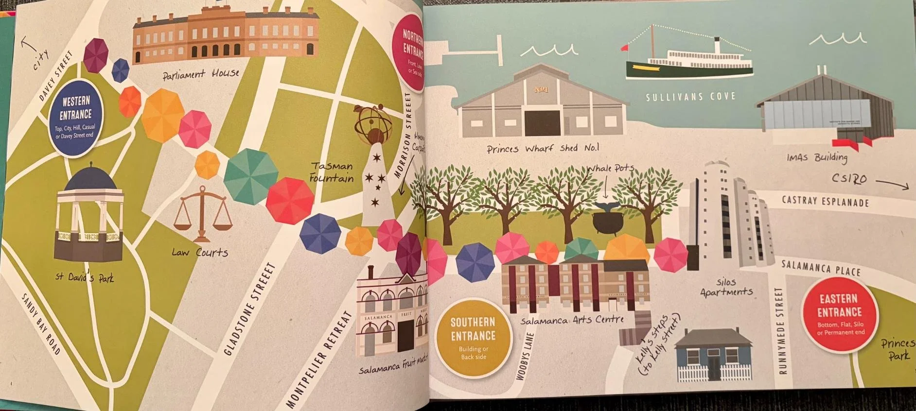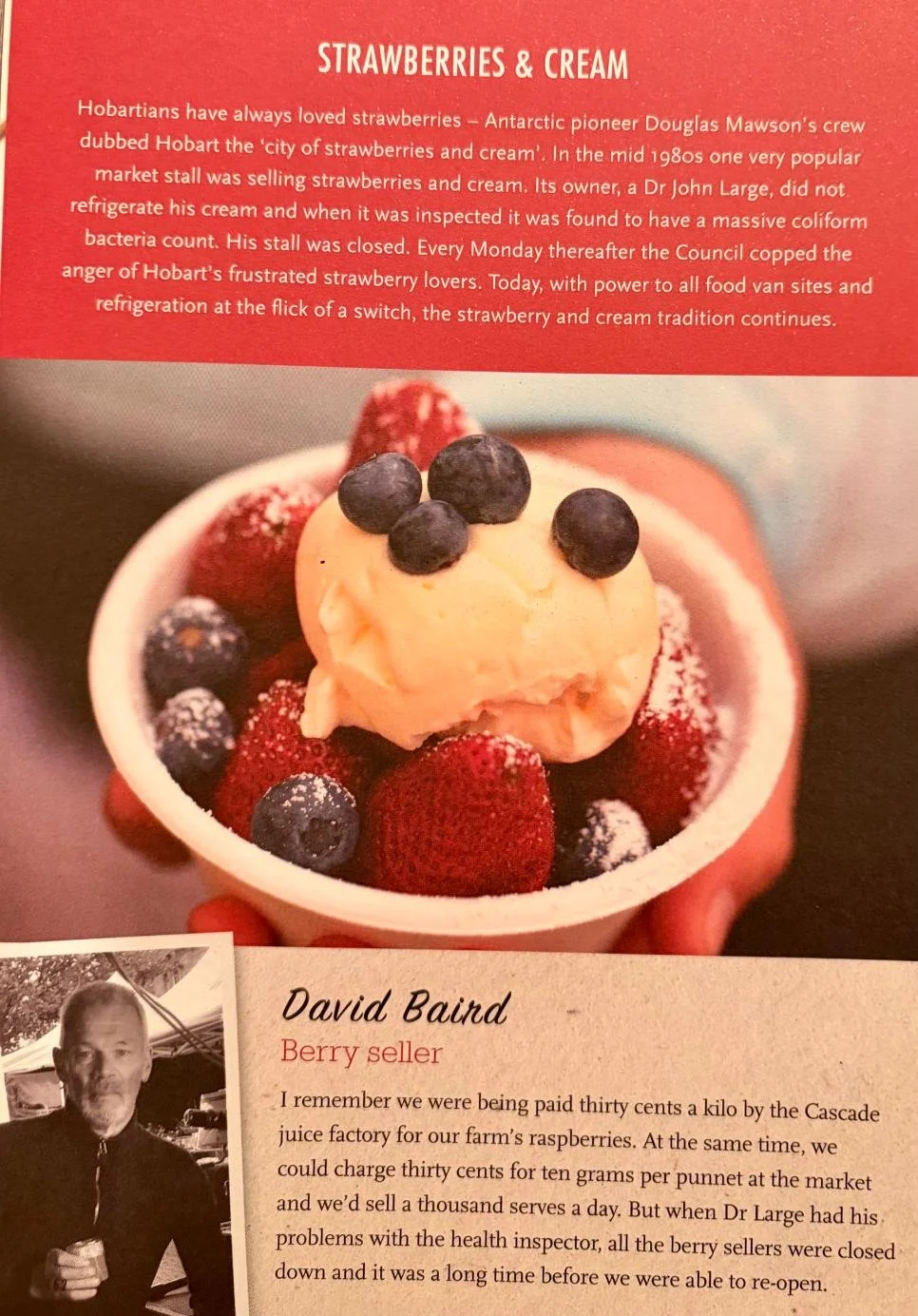 The book’s author, Bernard Lloyd, tells the story of how he moved to Hobart knowing no one, so he often went to the market where the stallholders were always up for a chat and soon became his first friends. Twenty years later, he bought Ron Murray’s plant stall and he became a vendor. He thinks the Salamanca Market is Hobart’s quintessential experience. While stallholder Nick Haddow thinks “Salamanca Market is almost like improv theatre to us.”