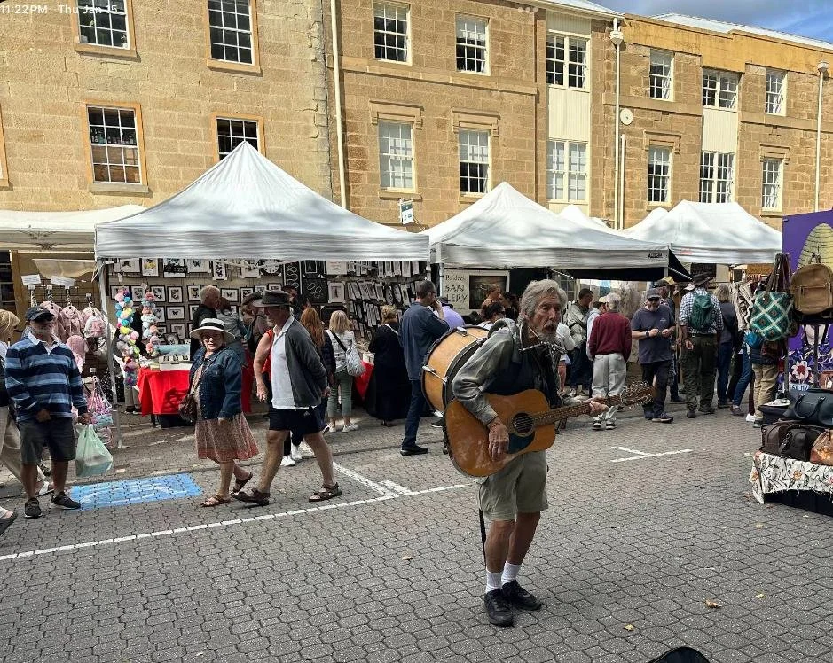 Buskers are big part of the success of the market. To quote the 1971 Salamanca Market Feasibility Report, “a properly balanced market is reinforced by auxiliary attractions such as band concerts, puppet theatre, exhibitions and pageantry.”