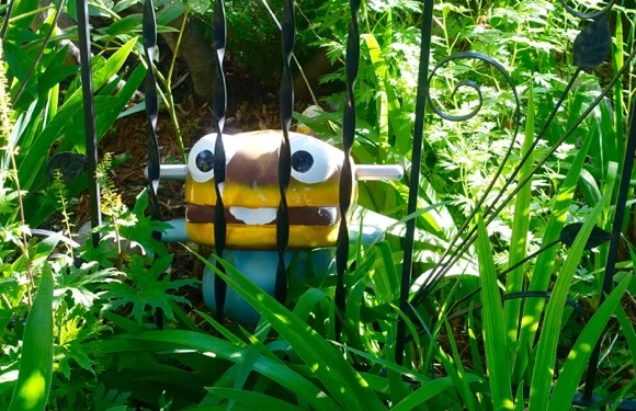 We also have Tommy The Turtle hidden in the front yard jungle. There are two daycare kids who have found it and ask if they can sit on it, if I am in the yard.