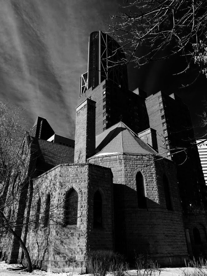 As a flaneur and street photographer I love to wander the streets and alley of Calgary’s City Centre looking for different perspectives on the urban landscape. I am often torn between photographing in colour or black and white. I thought it might be fun to compare the same image in colour and black and then white side-by-side.