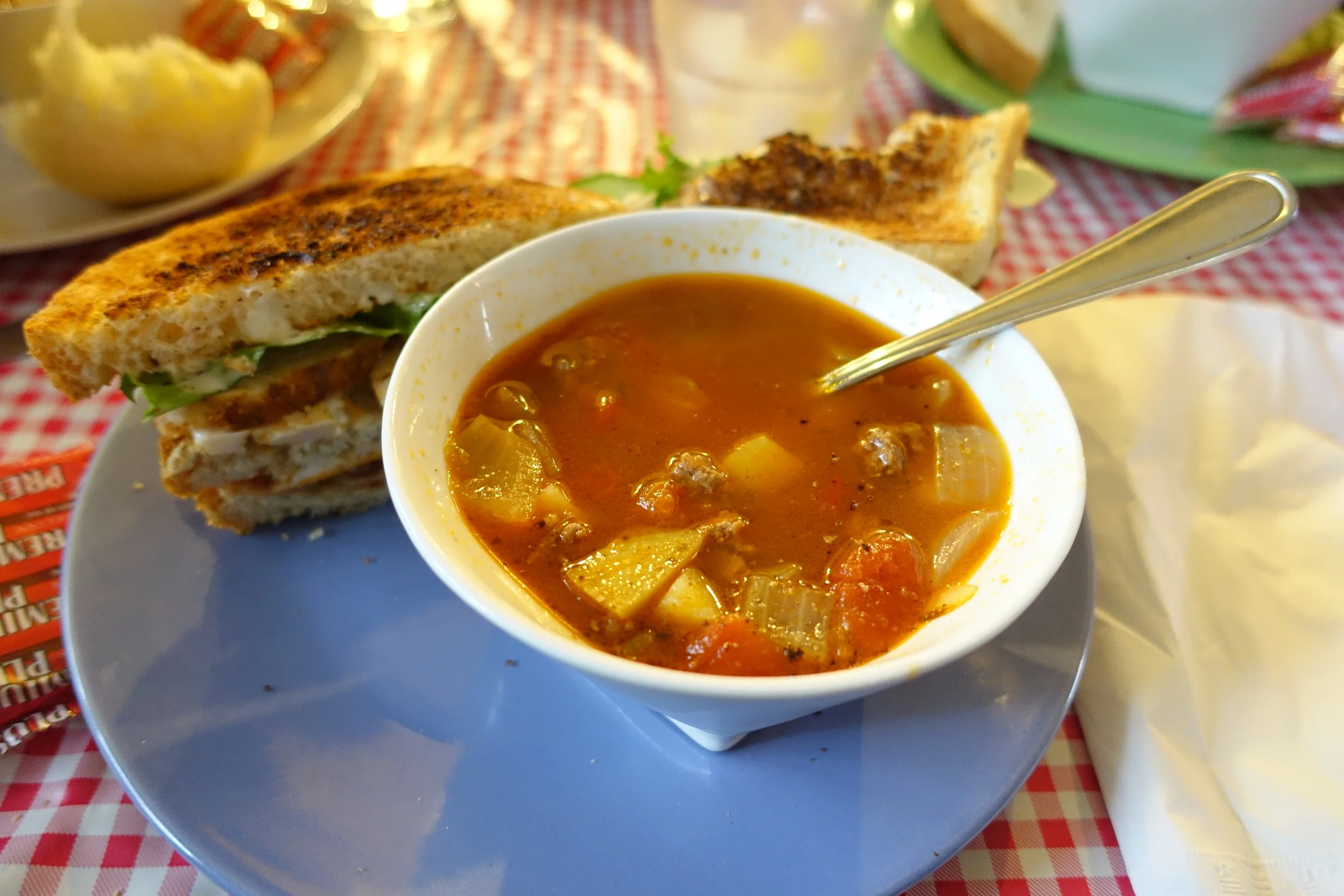 The Main Street Café is our go-to spot for lunch – good home food. This time we each had a bowl of tangy hamburger soup, I had a sandwich loaded with chicken, bacon and lettuce, we shared a slice of homemade Boston Cream pie and we all had one of their gooey cinnamon buns (cream cheese added to order at no extra cost) - all for $29. The Cafe is definitely a walk back in time, as Glenn Andrews one of the owners came over and asked us how our meal was. We said how wonderful the Hamburger soup was and then got chatting about soups and he gave us a taste and history lesson on the new "soup of the day" Mulligatawny (the popular Hamburger soup had run out). Nicely rested we headed out to explore the shops.