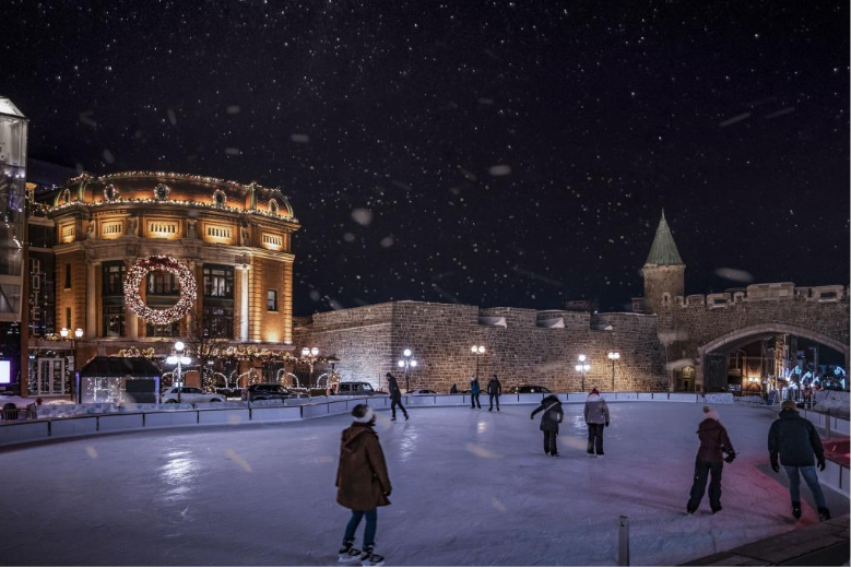The heart of winter activity is Old Quebec. This UNESCO-listed district becomes especially enchanting when snow settles on rooftops and twinkling lights illuminate narrow streets. One of the most popular skating spots is Place D’Youville, an outdoor rink surrounded by historic walls and lively cafés.
